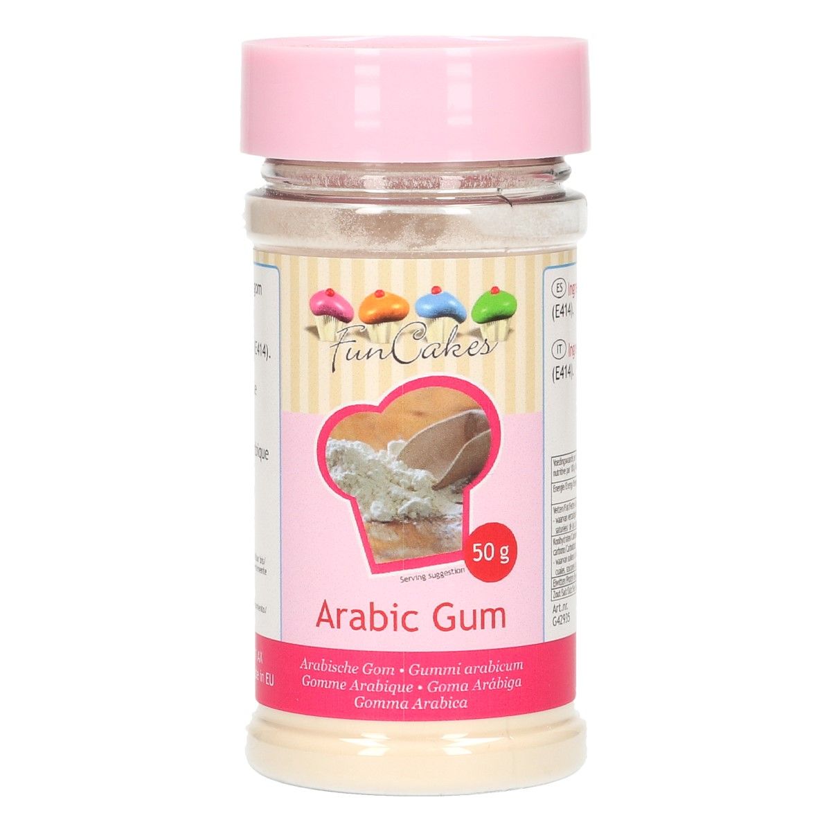 La gomme arabique de FunCakes et un ciment végétale. Il peut être utilisé comme stabilisateur ou ciment. Ce produit est une gomme naturelle en ne contient pas de ingrédient animale.