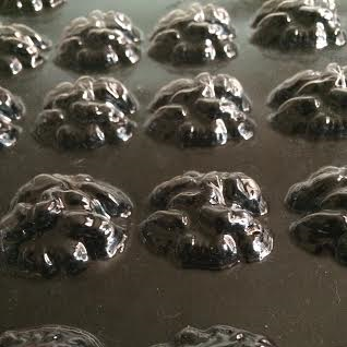 Faire couler du chocolat ( blanc, noir ,au lait ou coloré) ou du candy met, enlever l'excédent et laisser cristalliser, au frigo ou au congélateur. Démoulez, c'est prêt.